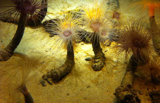 Dentro un sin fin de colores. Una sala enorme sólo con aguas vivas, otra solo con los caballitos de mar de todo tipo, otra sólo con diferentes algas, otra con peces y tiburones. La entrada es cara (USD 37), pero vale la pena. Aún, tiene una parte donde podemos poner una mano sobre las estrellas de mar y algas, muy instructivo para los pequeños.