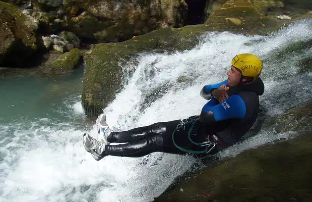 es un barranco que también se puede hacer en familia con niños ya que no tiene ningún paso obligatorio, los saltos se pueden esquivar por un lateral y el rapel si alguien no lo quiere realizar se puede bajar por un lado.