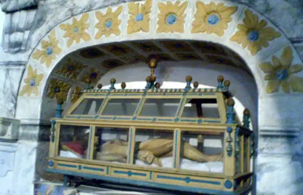 Está cubierta por bóveda de crucería estrellada completamente decorada con pinturas con motivos vegetales, alternándose en las dovelas los colores blanco y rojo.