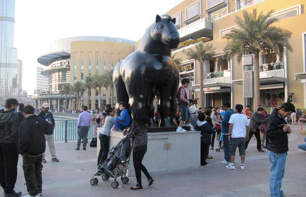 Junto al lago de las fuentes, en el Dubai mall, donde se levanta el edificio más alto del mundo, el Burj Khalifa, encontrarás una enorme estatua de un caballo realizada por el pintor, escultor y dibujante colombiano.