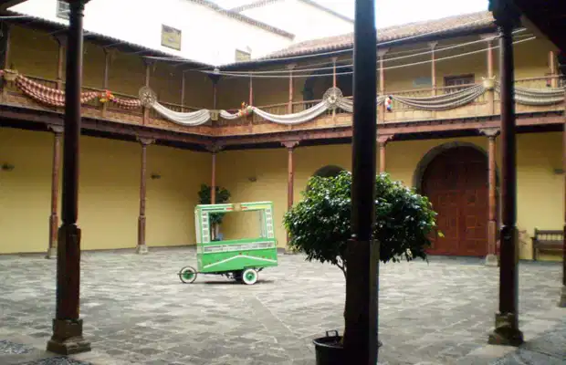 El edificio tiene dos alturas y se estructura en torno a un claustro central de suelo empedrado, rodeado de galerías y corredores de madera. Las salas de la planta baja estaban cerradas, salvo una en la que estaban dando clases de ópera. En la planta superior y en el patio había una interesante exposición acerca de la erupción del Teide y su repercusión en los distintos lugares de la isla, y en especial en Garachico. También, a través de paneles interpretativos, se explicaba lo que es un volcán y cómo entra en erupción. En el claustro había una serie de vitrinas con una exposición de minerales.