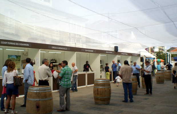 El fin de semana del 5 y 6 de Agosto tuve la suerte de coincidir con la celebración de la feria del vino, que tenía lugar en la Plaza García Barbón. Allí montaron una serie de stands donde estaban presentes doce bodegas productoras del vino con denominación de origen Monterrei. Por 5€ comprabas un catavinos y podías degustar 5 copitas de vinos diferentes. A las 12 de la mañana tuvo lugar el pregón e inauguración de la fiesta, con un discurso del presidente de la diputación de Orense, el alcalde y el presidente de la D.O. Monterrei, seguido de una traca de petardos.