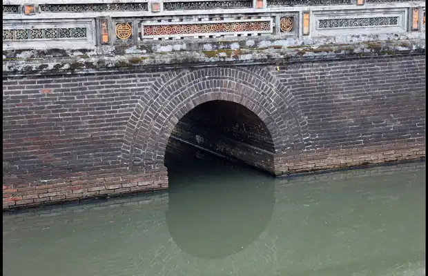 La ciudadela tiene un perímetro de 10 Kilómetros y está rodeada por un inmenso foso que tiene 30 metros de anchura y 4 metros de profundidad. Lo más destacado de este foso es que está construido haciendo zig-zag. Actualmente el foso está lleno de plantas, sobre todo de lotos, aunque cuando llegamos la mayoría estaban cerrados.