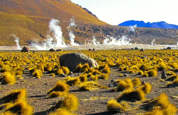 Los Geysers del Tatio están a unos 80 km (2 horas) al norte de San Pedro de Atacama. Es el campo geotérmico más alto del mundo y se encuentra por encima de los 4000 msnm.