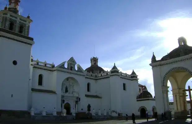 Su iglesia es en realidad una catedral, construida en este centro, ya importante al nivel religioso para los incas. Ellos piensan que es la cuna de nacimiento de su civilización. Entonces llegan numerosos de peregrinaje para ver la Virgen de Copacabana, que también se conoce como la “reina de Bolivia”. Es la Virgen más venerada del país.