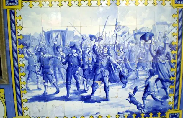 La plaza fue inaugurada en 1.931, y consta de un gran espacio central con una fuente y cuatro parterres de jardines a su alrededor. También hay varios bancos de obra forrados de azulejos decorados que narran episodios históricos de Portugal.