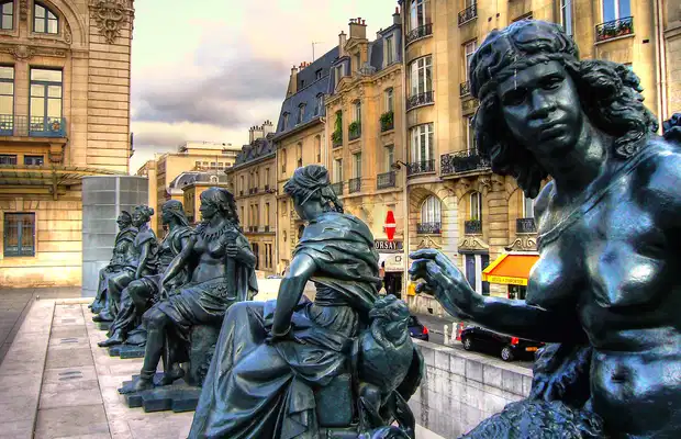 En principio estas estatuas fueron asignadas para la exposición universal de 1878 en el palacio del Trocadero pero por seguridad ahora las contemplamos en frente del Museo de Orsay.