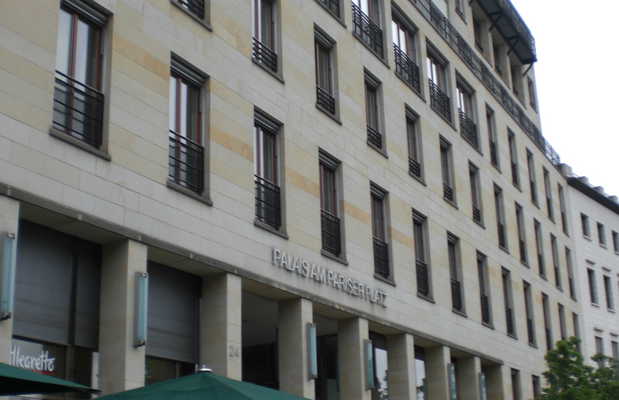 El Palais am Pariser Platz es un edificio bastante reciente que se construyó después de la reunificación de Berlín. Antes de esto, pasaba el muro justo en frente, puedes ver si te fijas en el suelo del otro lado de la puerta de Brandeburgo, están las marcas del lugar por donde estaba construido el muro. El palais está por un lado dando hacia la plaza de París, justo al lado de la famosa puerta de Brandeburgo, y por el otro lado da hacia los jardines de Tiergarten y el palacio del parlamento. El diseño del lugar está muy abierto con luz y un patio interior cubierto donde hay obras de arte. Un hotel está instalado a dentro, así como un restaurante y algunas tiendas.