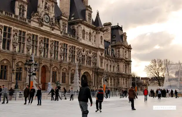 Todos los años es posible patinar sobre hielo en medio de la capital francesa. Se instala un gran recinto justo delante del edificio del ayuntamiento ("le patinoire de l'Hôtel de Ville") que se llena de agua y se crea el hielo. Hay un recinto ovalado para adultos y experimentados (unos 1000 metros cuadrados) y un espacio más pequeño para los niños y principiantes (unos 300 metros cuadrados).